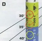 - Проведите воображаемую линию вдоль поверхности склона через сheck-and-ride и в соответствии с цифрами на нём (30º, 35º, 40º) определите примерный угол наклона.