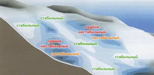 70% всех несчастных случаев, связанных с лавинами происходит на склонах близких к северу (В-С-З), 56% на северных ( СЗ и СВ).