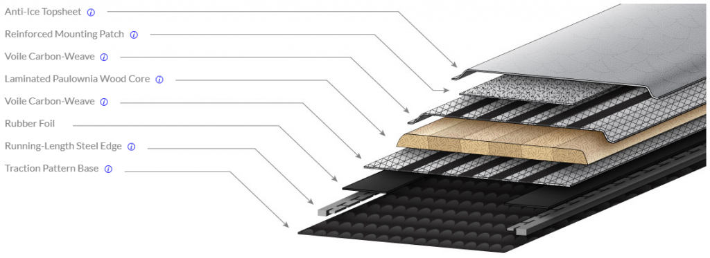 Ультралегкая конструкция облегчает подъем, с дополнительным слоем карбона для увеличения жесткости. Рисунок "BC" на базе шкуры добавлен под ногами для уменьшения количества переходов при пересечении волнистой местности.
